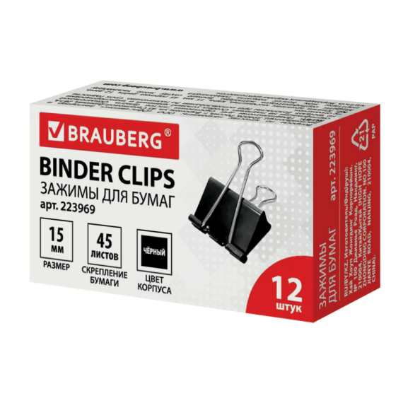 Зажимы для бумаг BRAUBERG предназначены для скрепления документов без использования степлера.