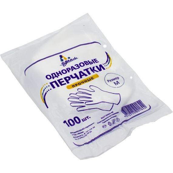 Перчатки ПЭ одноразовые прочные (M) Идеал (х100/10000), 100шт/упак