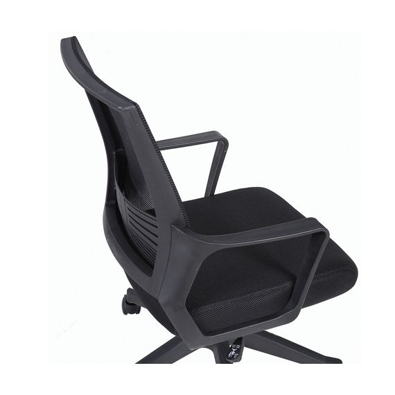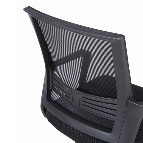 Спинка кресла выполнена из прочного сетчатого акрила с оригинальным "узором". Материал обладает высокой воздухопроницаемостью, легко чистится, способен подстраиваться под физиологические изгибы спины, при этом сохраняет форму и не растягивается. Залогом комфортного использования кресла также является эргономичная форма надёжного пластикового каркаса.