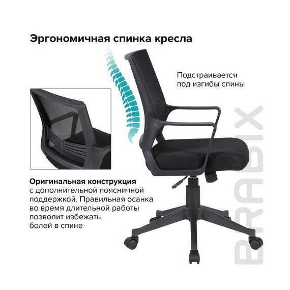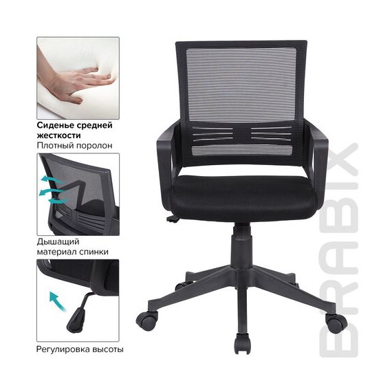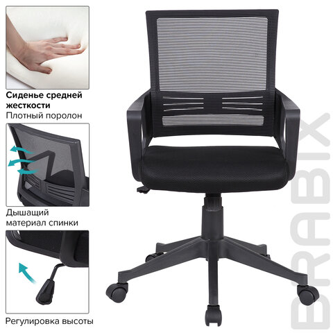 Кресло BRABIX "Balance MG-320", с подлокотниками, черное, 531831