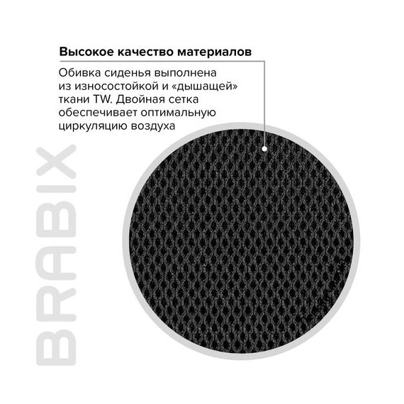 В обивке сиденья использована технологичная ткань серии TW - сложный композитный материал толщиной 5-7 мм, состоящий из нескольких слоев тканных и нетканых компонентов. Материал отлично пропускает воздух, устойчив к износу, долго сохраняет цвет, неприхотлив в уходе.