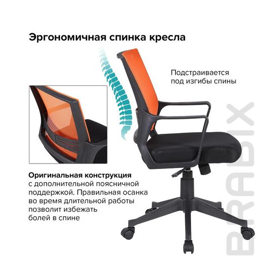 Кресло BRABIX " Balance MG-320", с подлокотниками, комбинированное черное/оранжевое, 531832