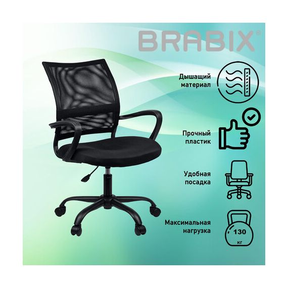 Кресло BRABIX "Cargo MG-391", до 130 кг, пятилучие металлическое, ткань/сетка, черное, 532786