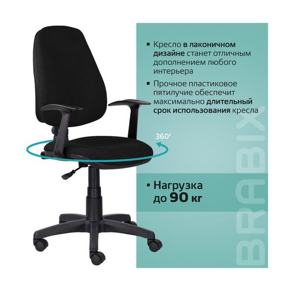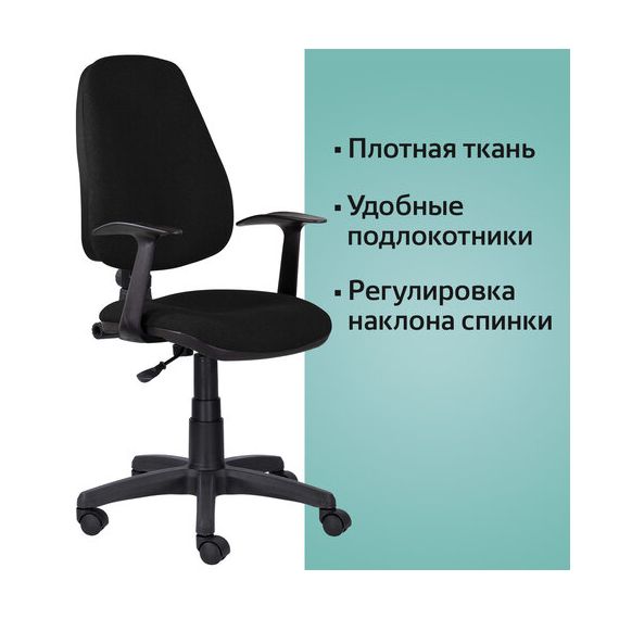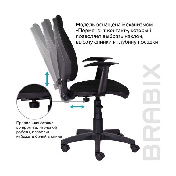 Кресло BRABIX "Comfort MG-321", регулируемая эргономичная спинка, ткань, черное, 532556