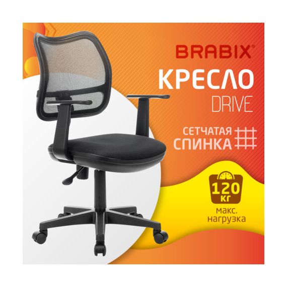 Кресло BRABIX "Drive MG-350", с подлокотниками, сетка, черное, 532082