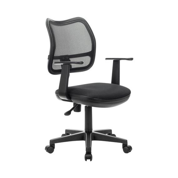 Для снятия напряжения с плеч в конструкции предусмотрены удобные подлокотники, Пятилучие пластиковое, ограничение по весу — до 120 кг.