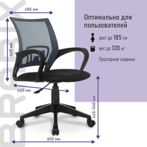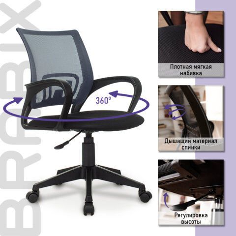 Кресло BRABIX "Fly MG-396", с подлокотниками, сетка, серое/черное, 532085