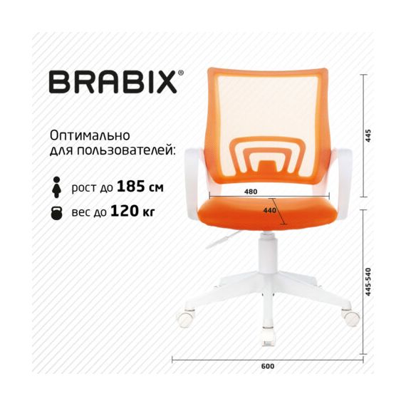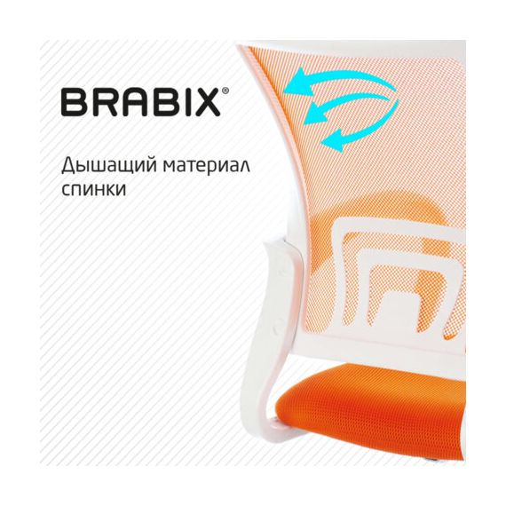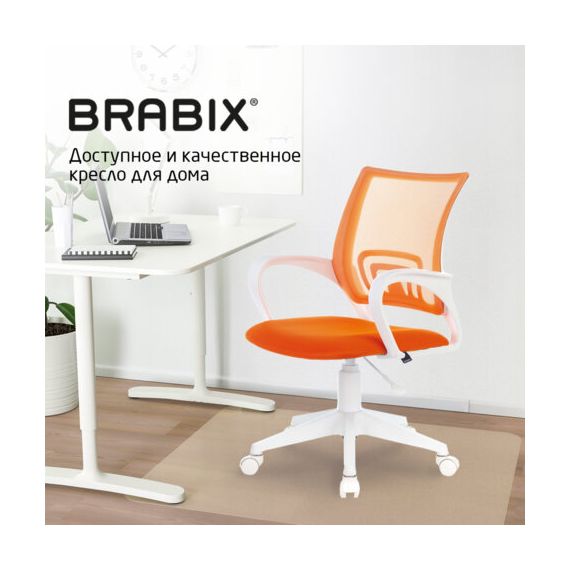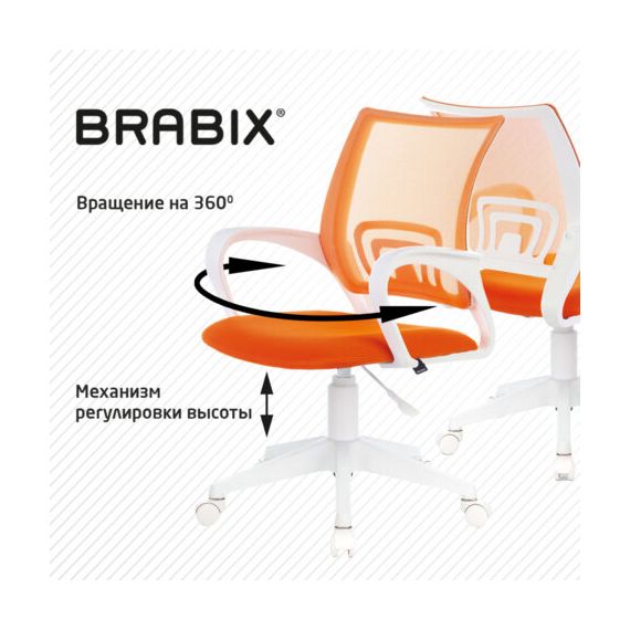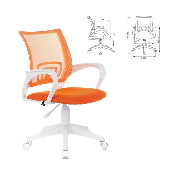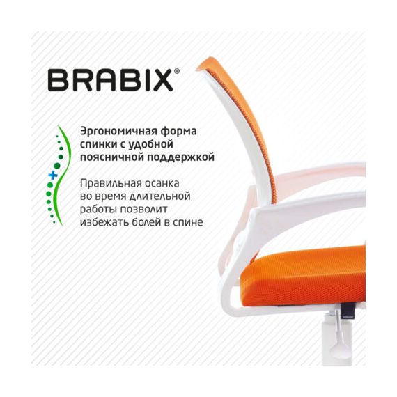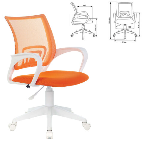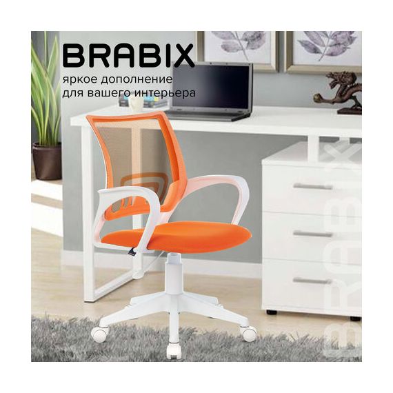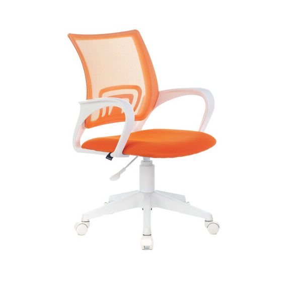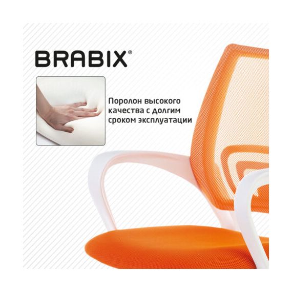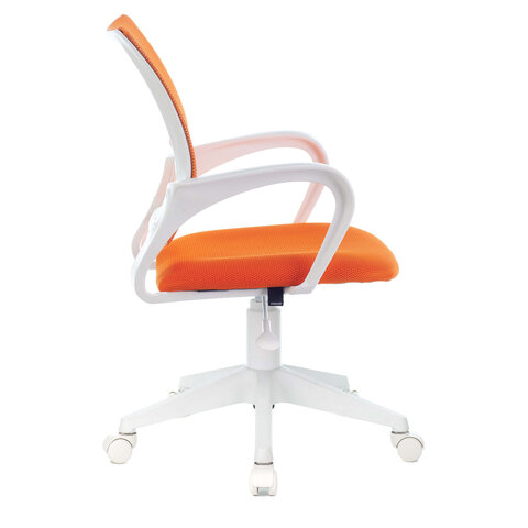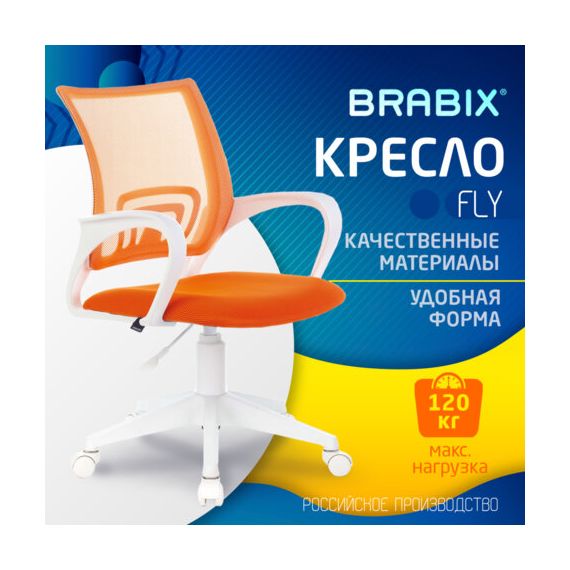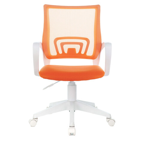 Кресло BRABIX "Fly MG-396W", с подлокотниками, пластик белый, сетка, оранжевое, 532401, MG-396W_532401