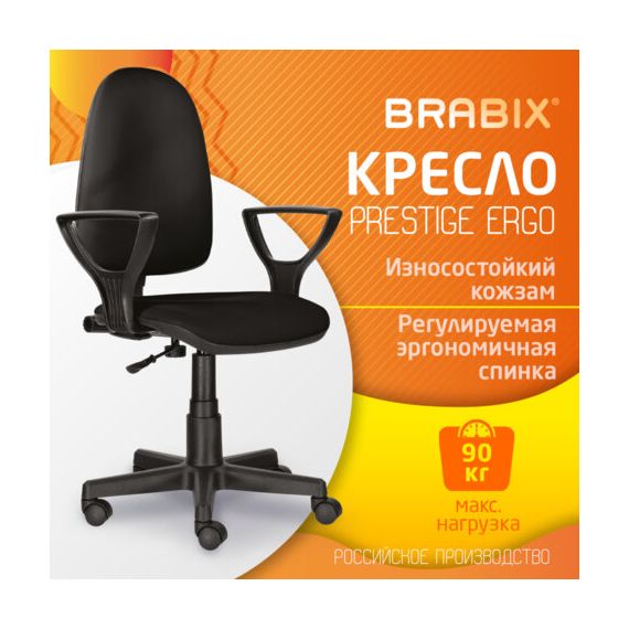 Кресло BRABIX "Prestige Ergo MG-311", регулируемая эргономичная спинка, кожзам, черное, 531877