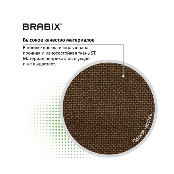 В обивке кресла использована прочная и износостойкая ткань ST. Материал неприхотлив в уходе, не имеет тенденций к выцветанию.