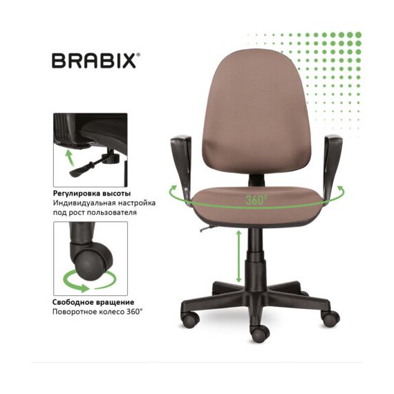 Кресло BRABIX "Prestige Ergo MG-311", регулируемая эргономичная спинка, ткань, бежевое, 531873