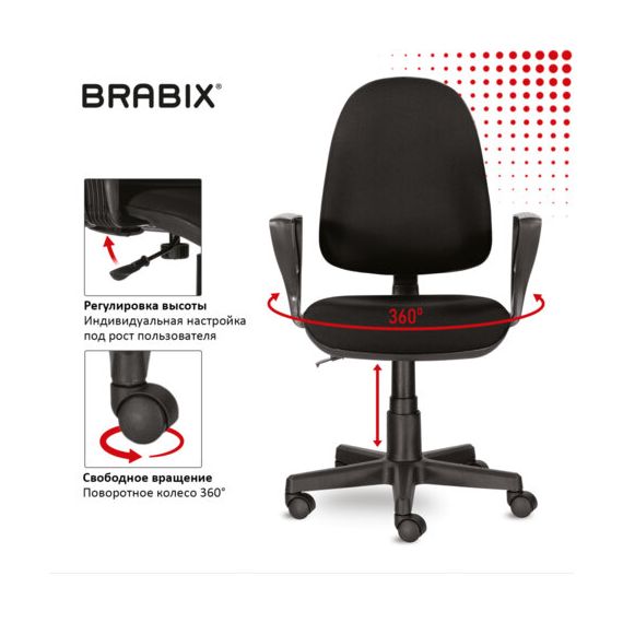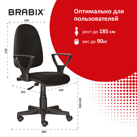 Кресло BRABIX "Prestige Ergo MG-311", регулируемая эргономичная спинка, ткань, черное, 531872