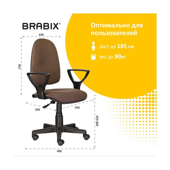 Кресло BRABIX "Prestige Ergo MG-311", регулируемая эргономичная спинка, ткань, коричневое, 531875