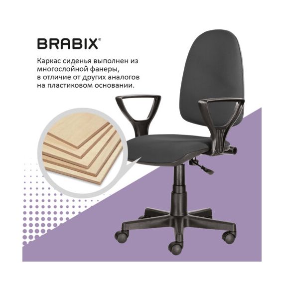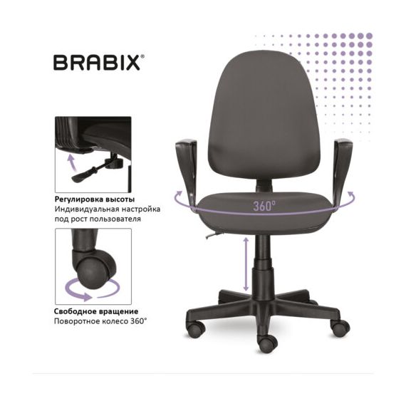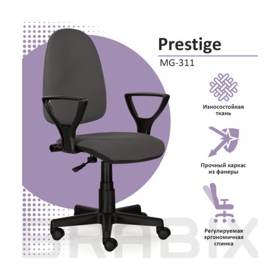 Кресло BRABIX "Prestige Ergo MG-311", регулируемая эргономичная спинка, ткань, серое, 531874