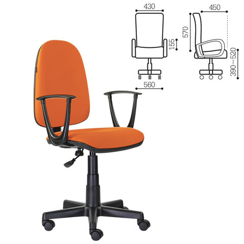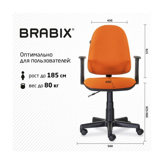 Кресло BRABIX "Prestige Start MG-312", эргономичная спинка, ткань, оранжевое, 531922