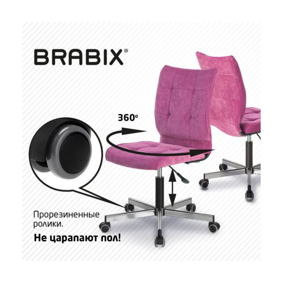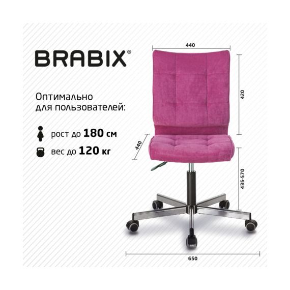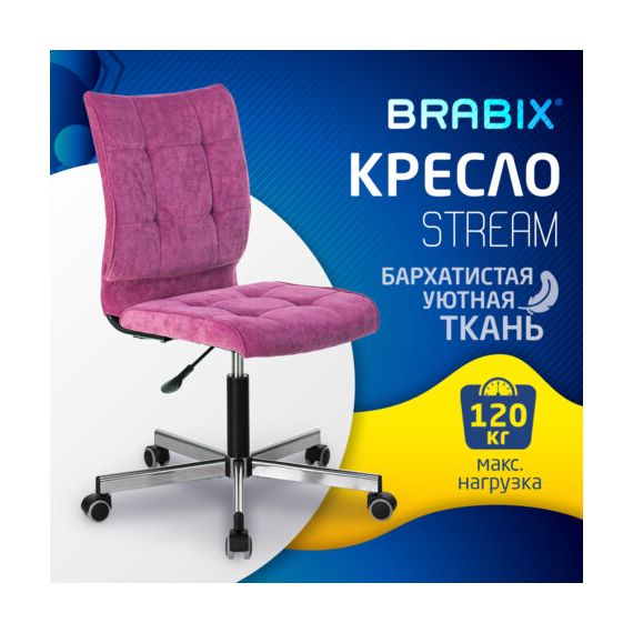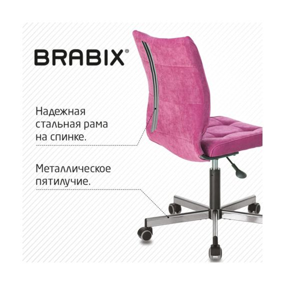 Кресло BRABIX "Stream MG-314", без подлокотников, пятилучие серебристое, ткань, малиновое, 532394, MG-314_532394