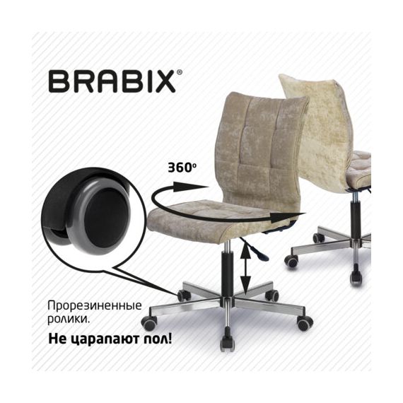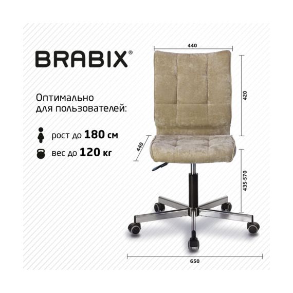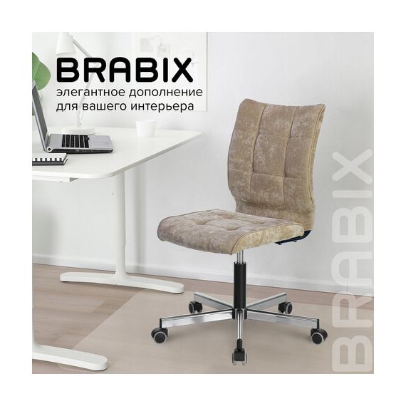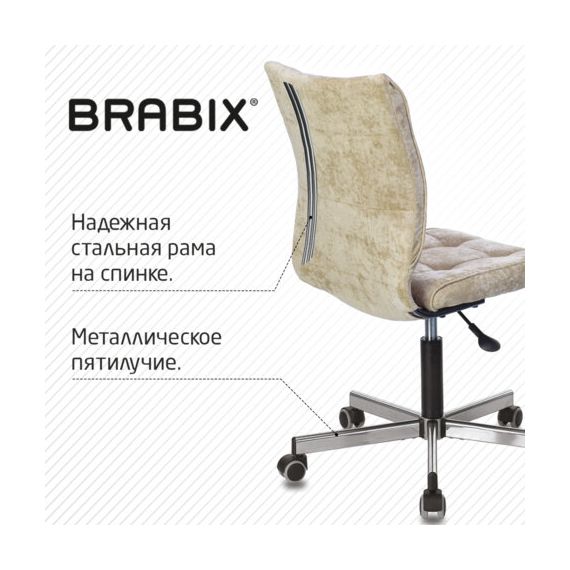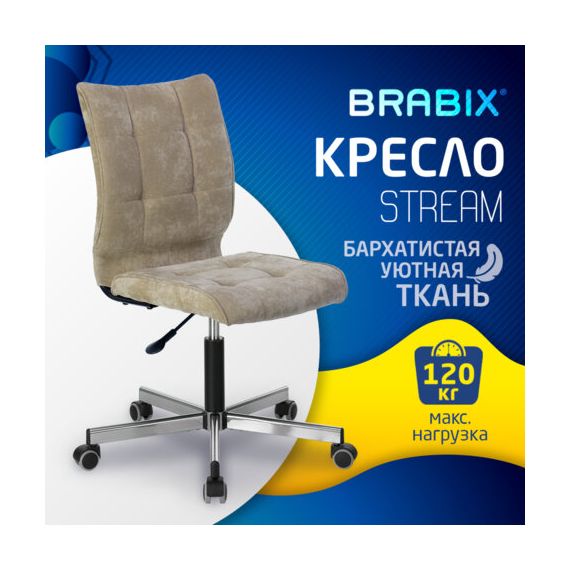 Кресло BRABIX "Stream MG-314", без подлокотников, пятилучие серебристое, ткань, песочное, 532396, MG-314_532396