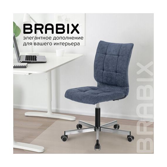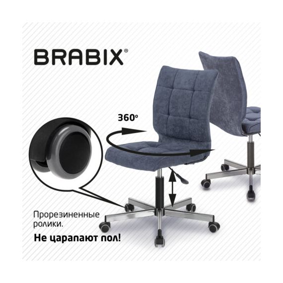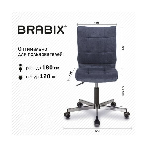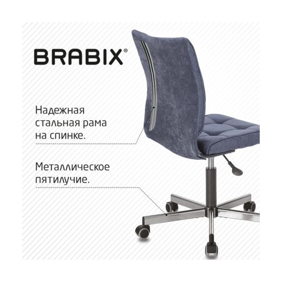 Кресло BRABIX "Stream MG-314", без подлокотников, пятилучие серебристое, ткань, темно-синее, 532397, MG-314_532397