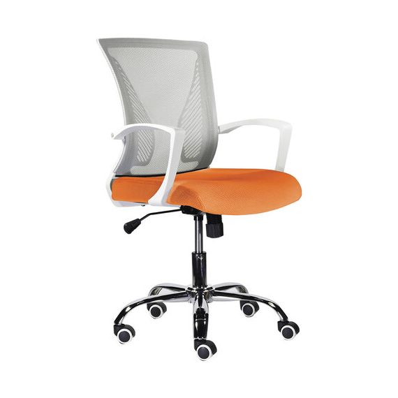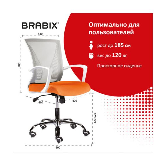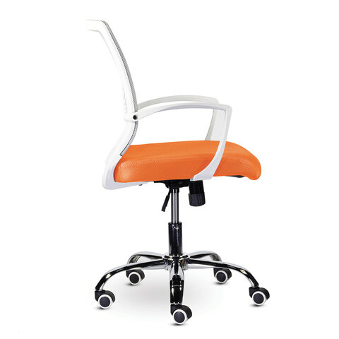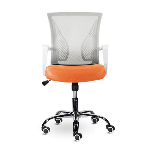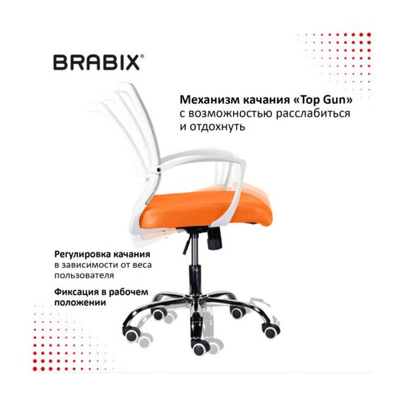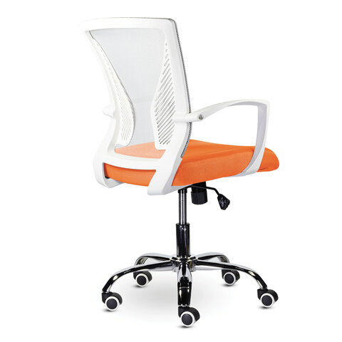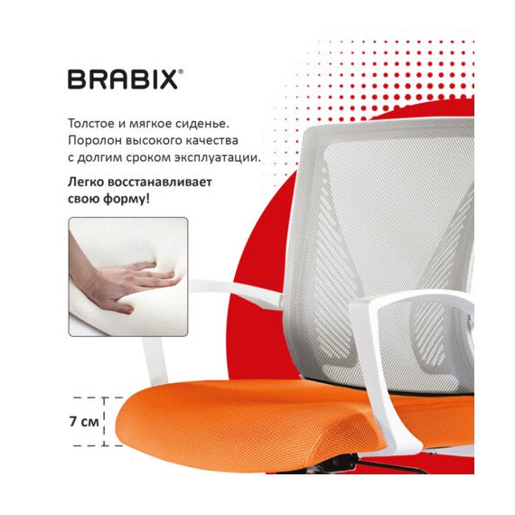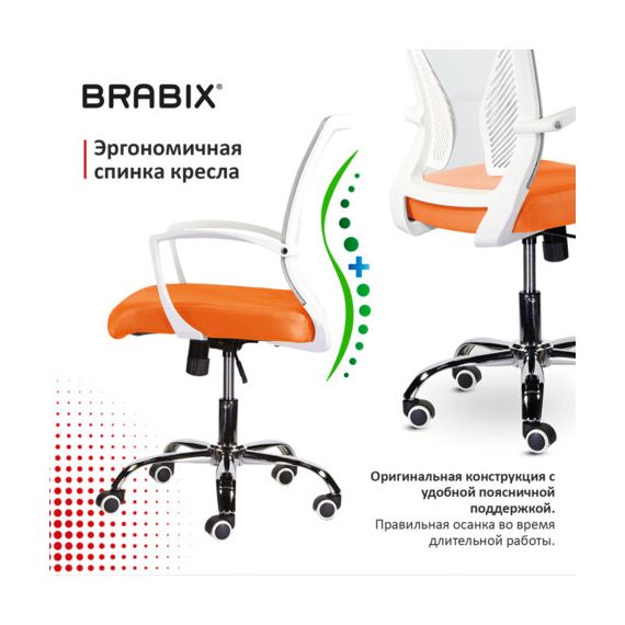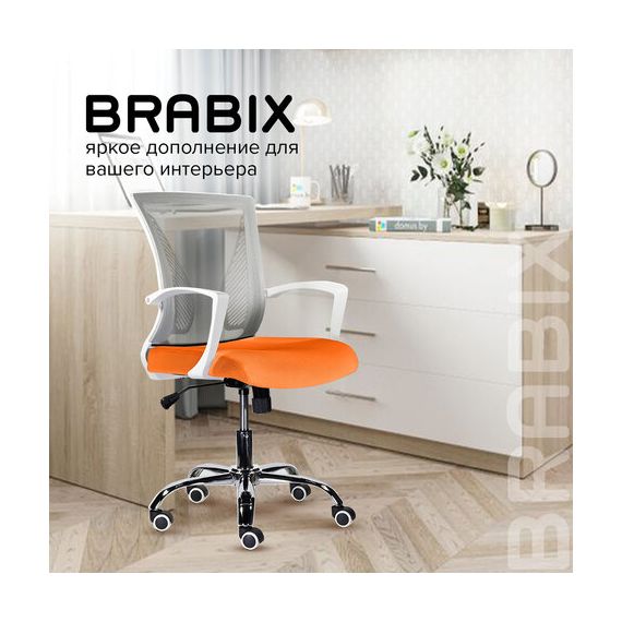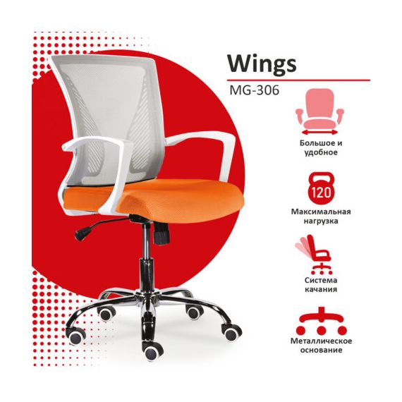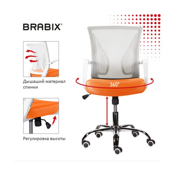 Кресло BRABIX "Wings MG-306", пластик белый, хром, сетка, серое/оранжевое, 532011