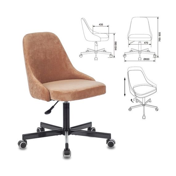 Кресло CH-340M, пятилучие металлическое, ткань, светло-коричневое, 1397884