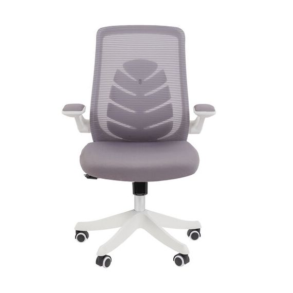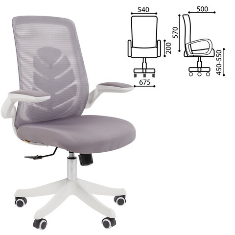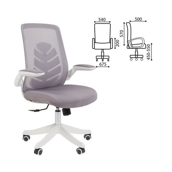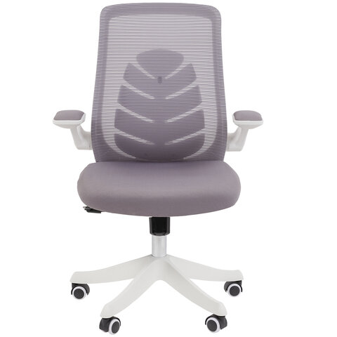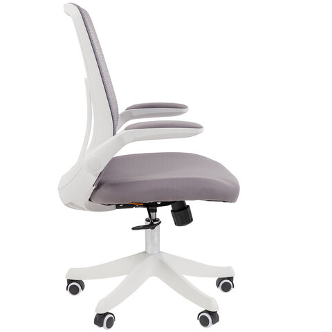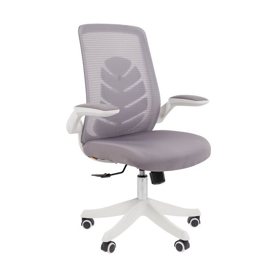 Кресло Chairman CH 565, откидные подлокотники, синхромеханизм, пластик белый, сетка/ткань, серое, 7146049