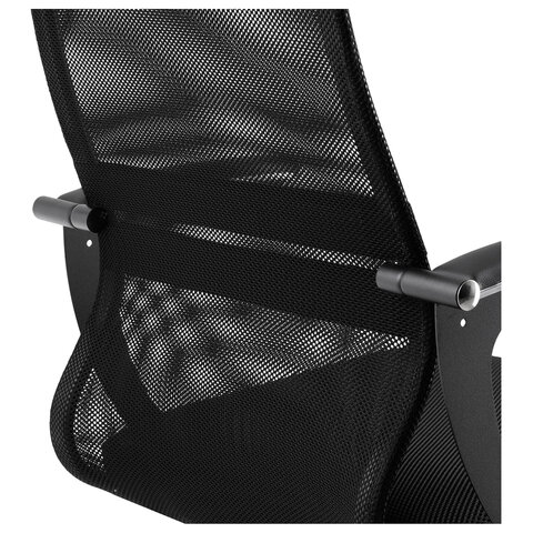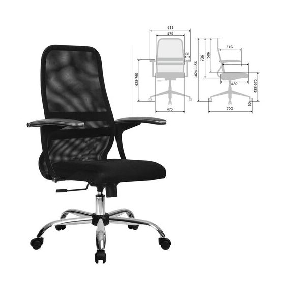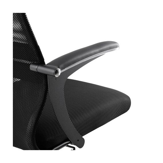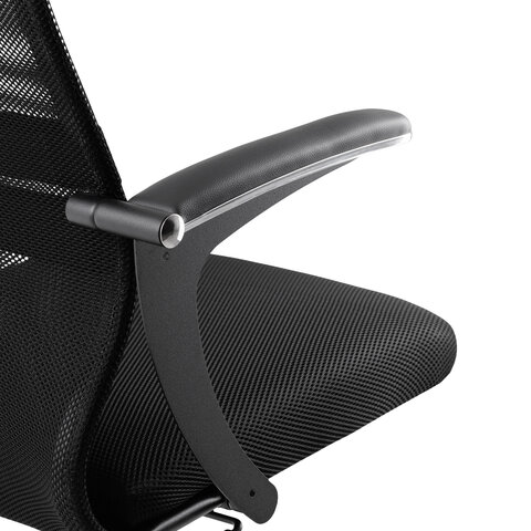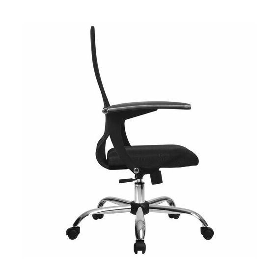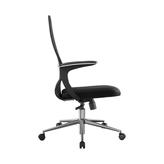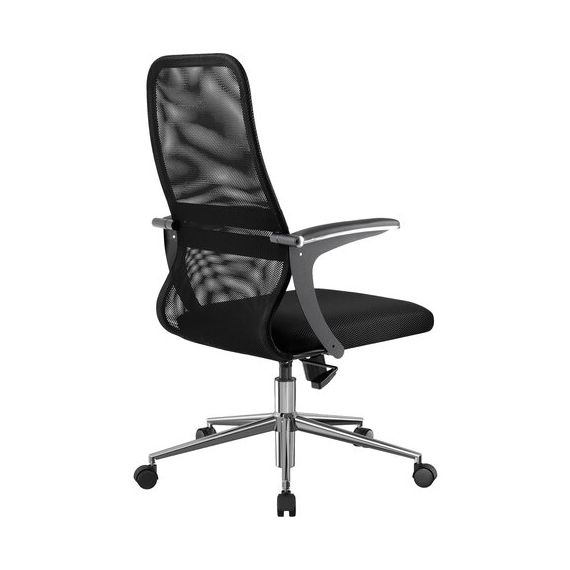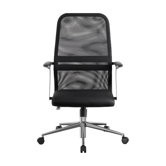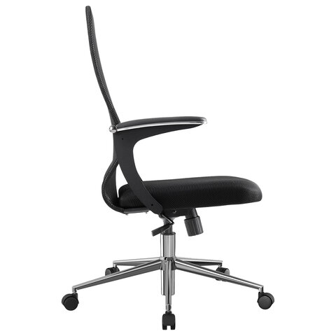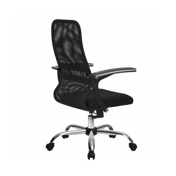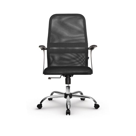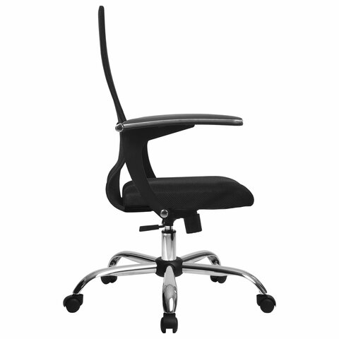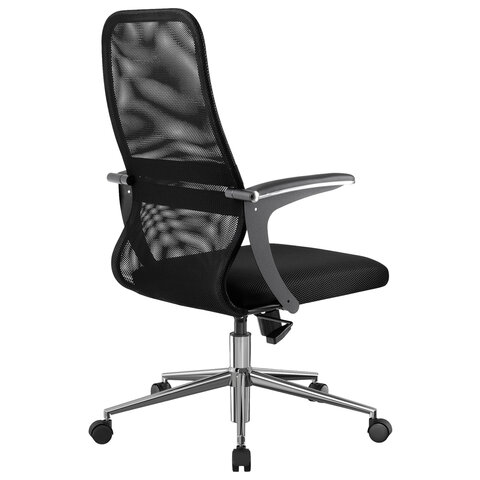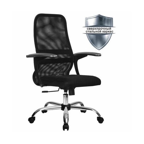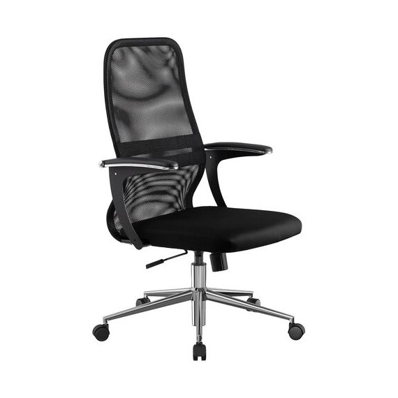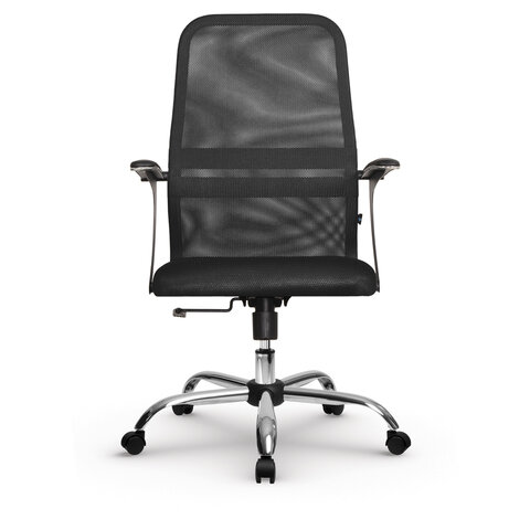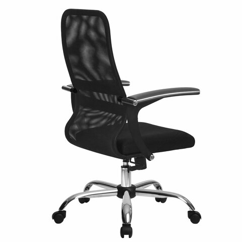 Кресло МЕТТА "SU-C-8-Т" хром, с подлокотниками, ткань-сетка, сиденье мягкое, черное