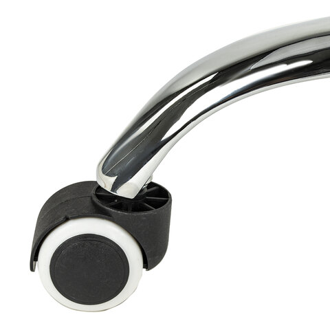 Кресло оснащено системой регулировки высоты. Ролики с мягким полиуретановым кольцом не царапают пол и снижают уровень шума. Хромированное пятилучие способно выдержать нагрузку до 100 кг.