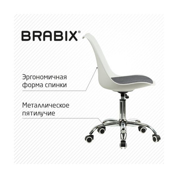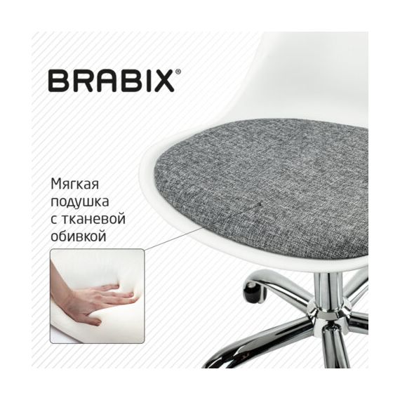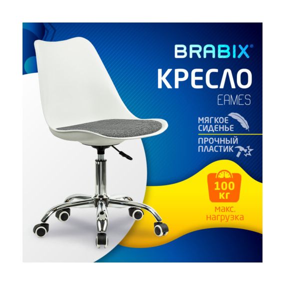 Кресло стул BRABIX "Eames MG-310 CH", хром, пластик белый, ткань серая, 532924