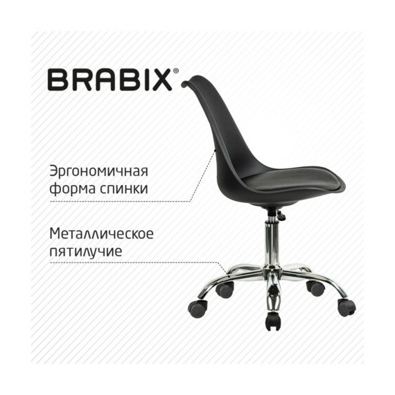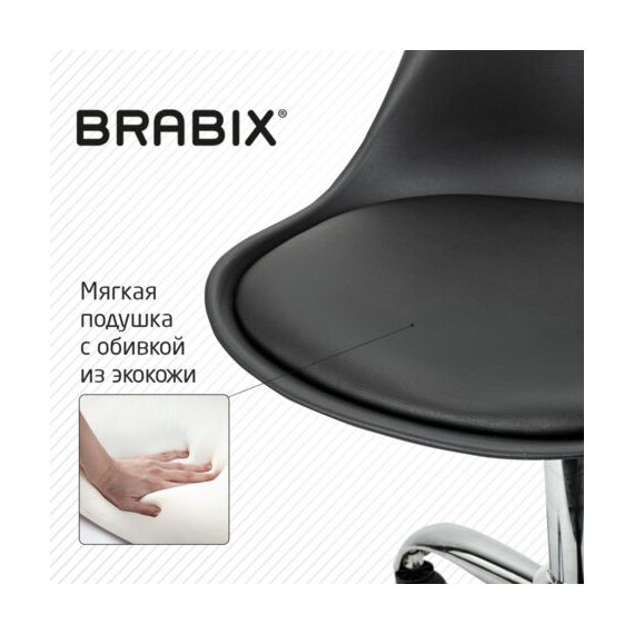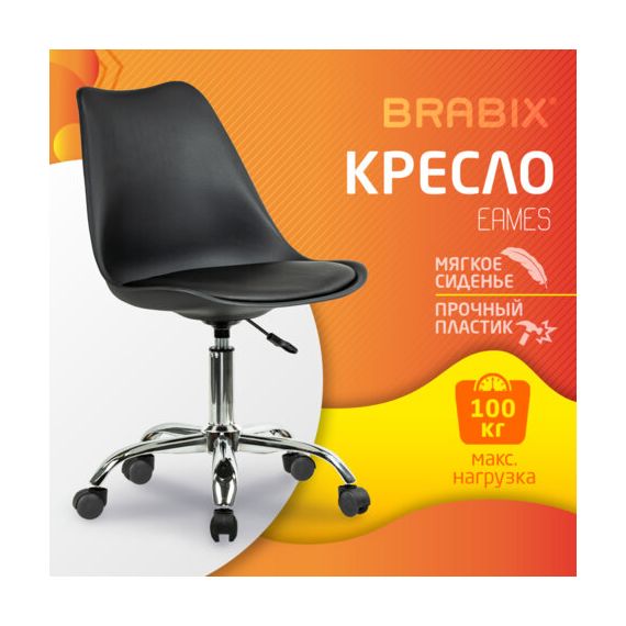 Кресло стул BRABIX "Eames MG-310 CH", хром, пластик черный, экокожа черная, 532925