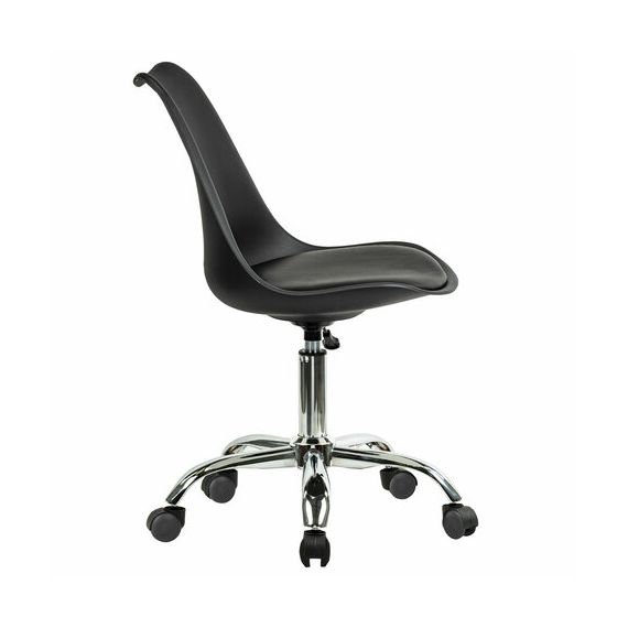 Кресло оснащено системой регулировки высоты. Хромированное пятилучие способно выдержать нагрузку до 100 кг.