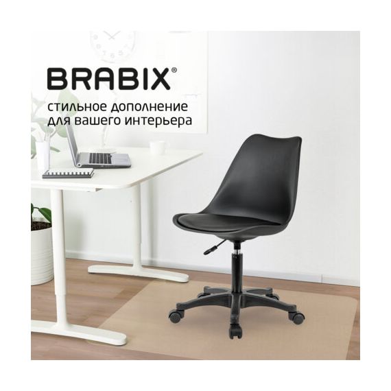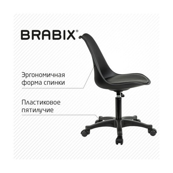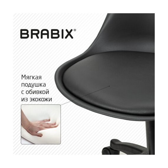 Кресло стул BRABIX "Eames MG-310 PL", пластик черный, экокожа черная, 532927