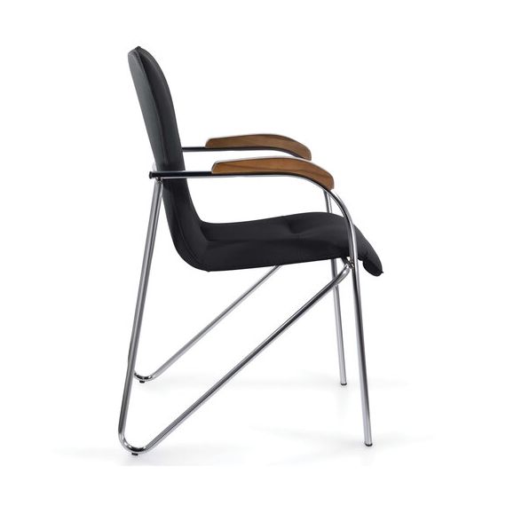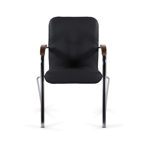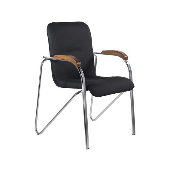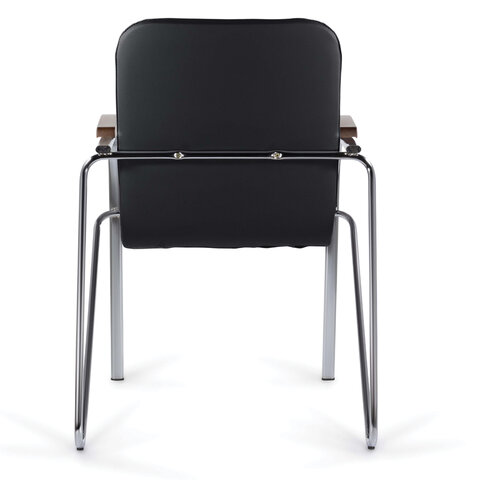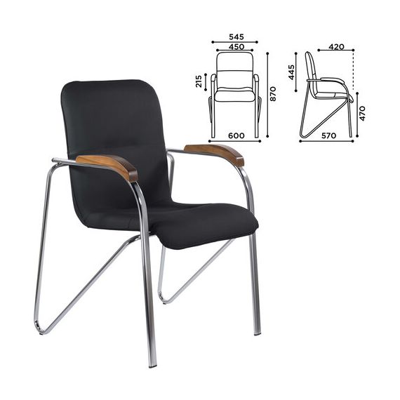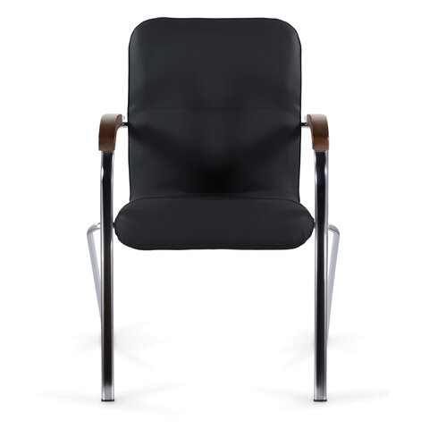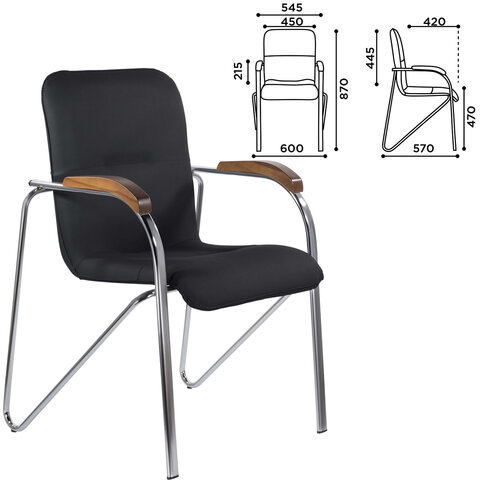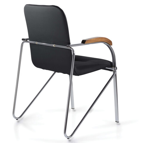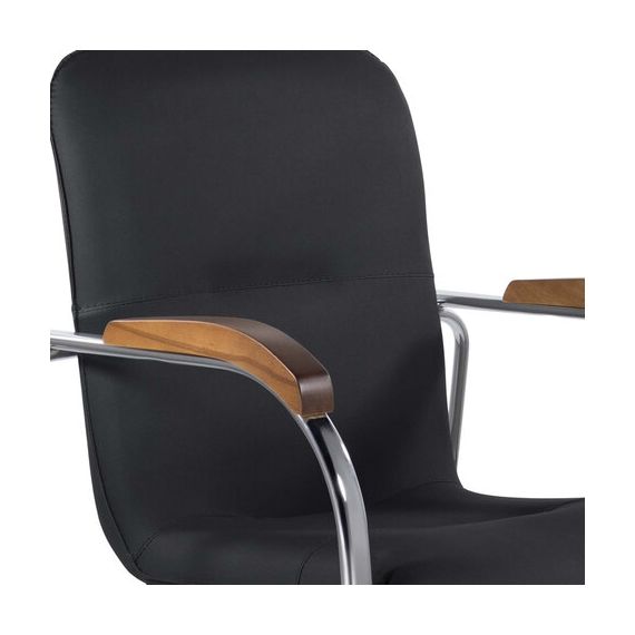 Кресло BRABIX "Samba CF-103", хром каркас, накладки "орех", кожзам черный, собрано, 532756