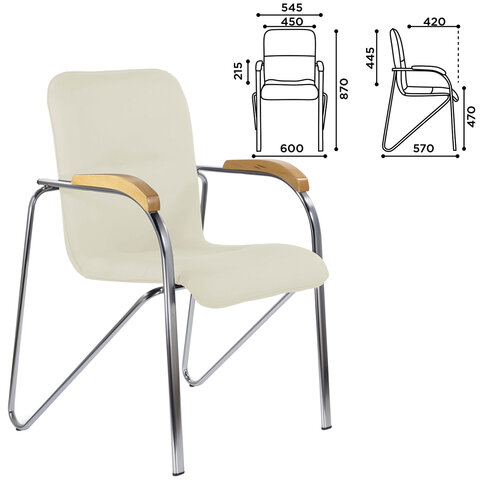 Кресло BRABIX "Samba CF-105 BOX-2", хром каркас, накладки "бук", кожзам бежевый, разобрано, 532762