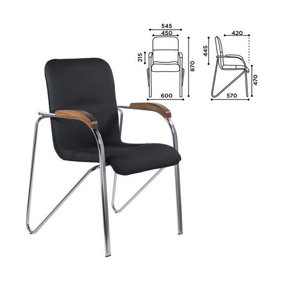 Кресло BRABIX "Samba CF-105 BOX-2", хром каркас, накладки "орех", кожзам черный, разобрано, 532761