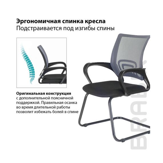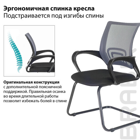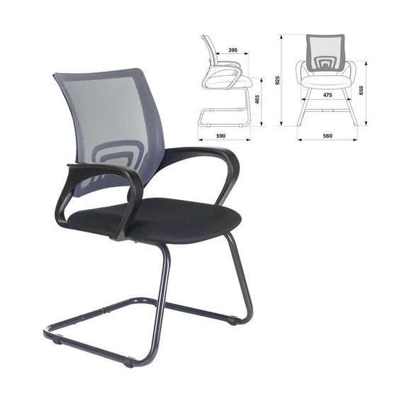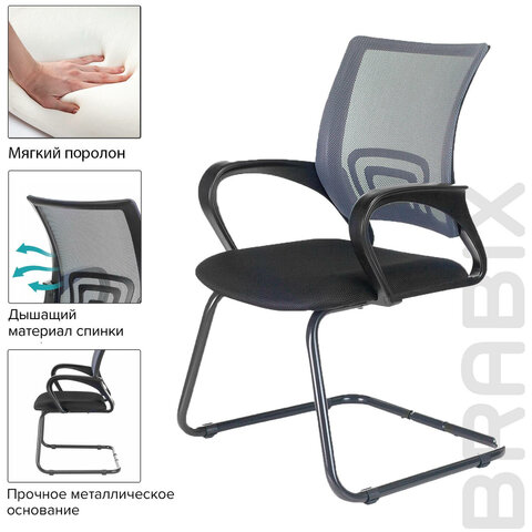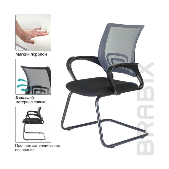 Кресло для приемных и переговорных BRABIX "Fly CF-100", серое/черное, 532089