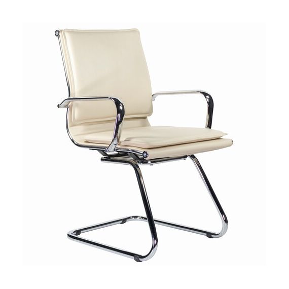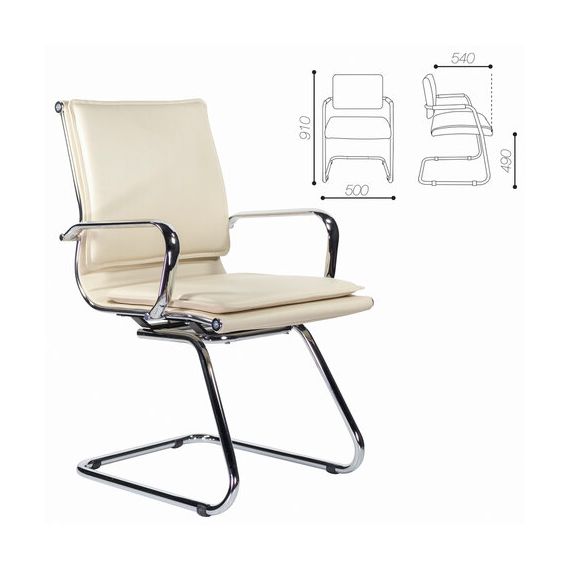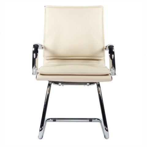 Кресло для приемных и переговорных BRABIX "Kayman CF-102", экокожа, хром, бежевое, 532573