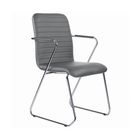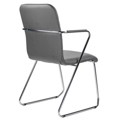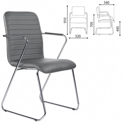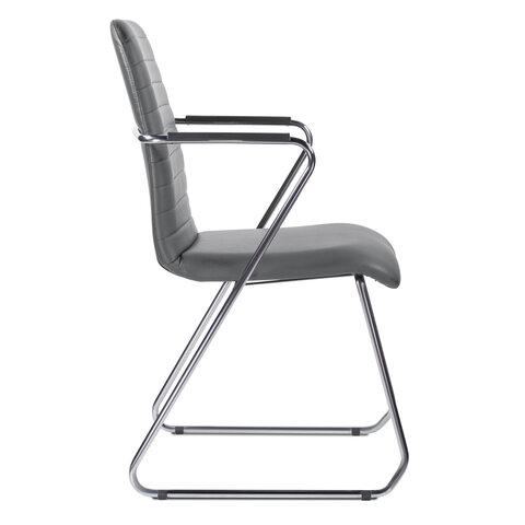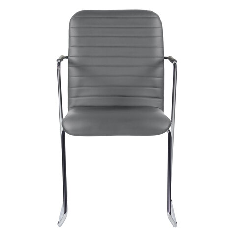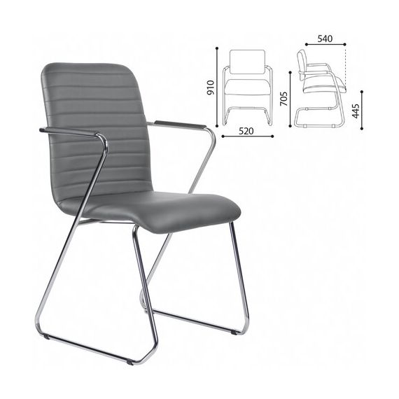 Кресло для приемных и переговорных BRABIX "Visit CF-101", хром, экокожа, темно-серое, 532561