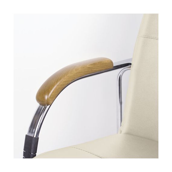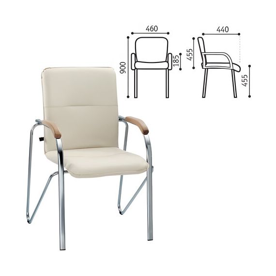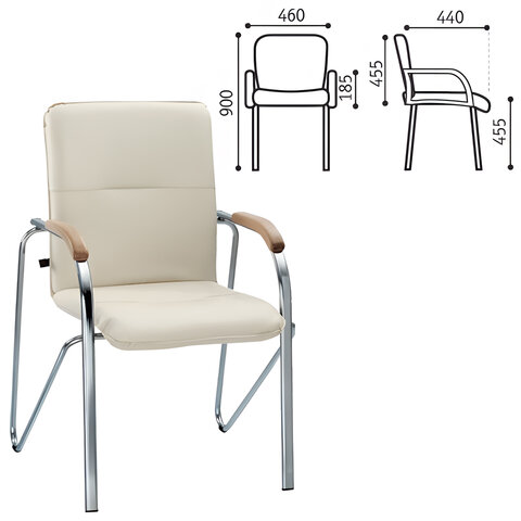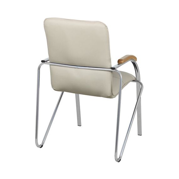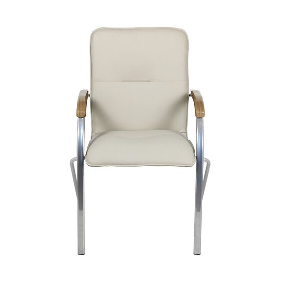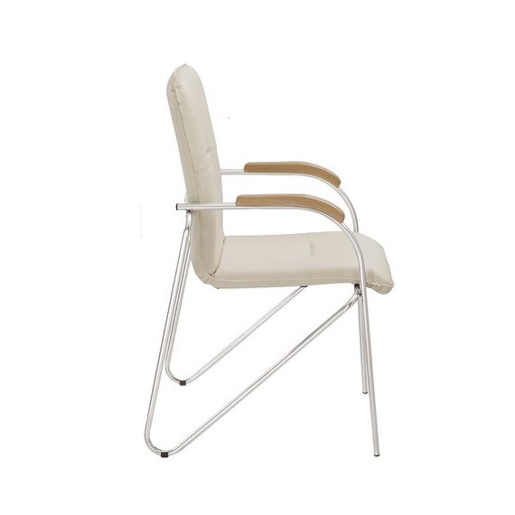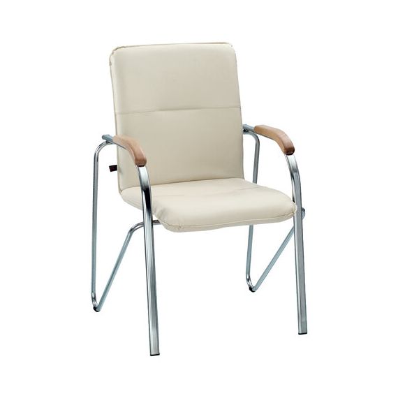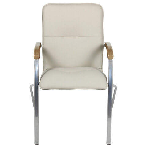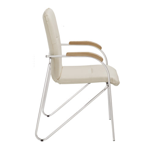 Кресло для приемных и переговорных "Samba", деревянные накладки, хромированный каркас, кожзам бежевый