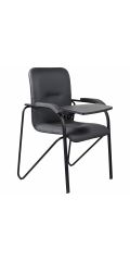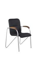 Кресло для приемных и переговорных "Samba", деревянные накладки, хромированный каркас, кожзам черный