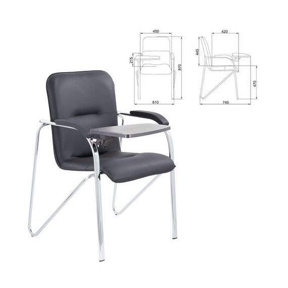 Кресло со столом BRABIX "Samba CF-108 BOX-2", хром каркас, кожзам черный, разобрано, 533218