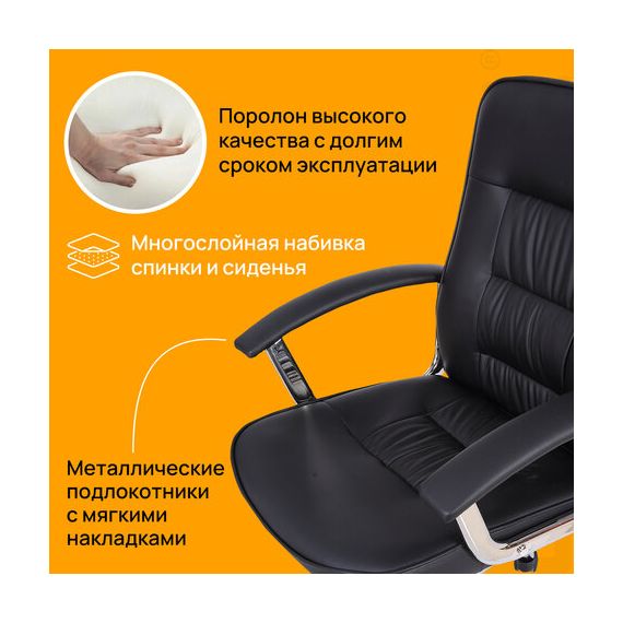 Прочные металлические подлокотники имеют мягкие накладки.