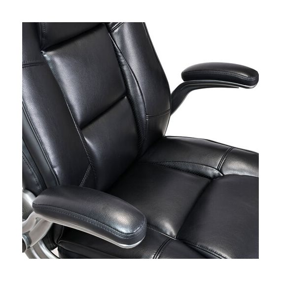 Обивка кресла выполнена из рециклированной кожи – современного материала, созданного из измельченных частиц натуральной кожи. По эластичности и прочности такая кожа максимально близка к натуральной, а также имеет запах выделанной кожи. Материал отлично пропускает воздух, что положительным образом сказывается на комфорте во время эксплуатации. Рециклированная кожа износоустойчива, кресло способно сохранять привлекательный внешний вид длительное время.