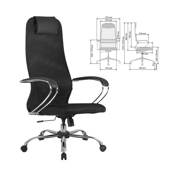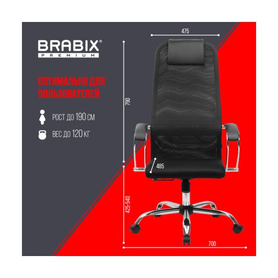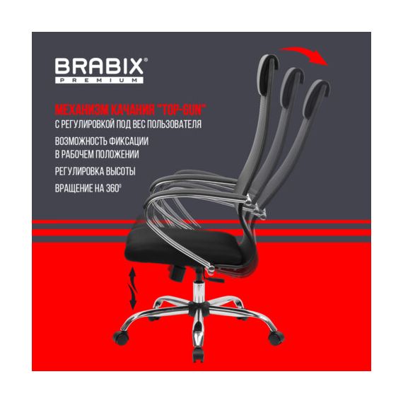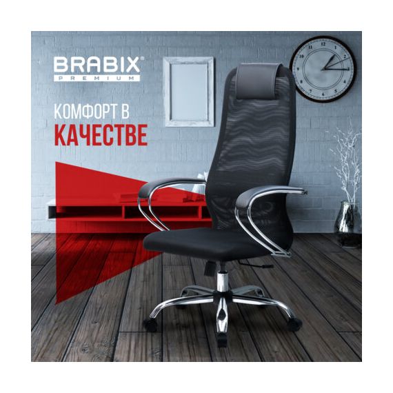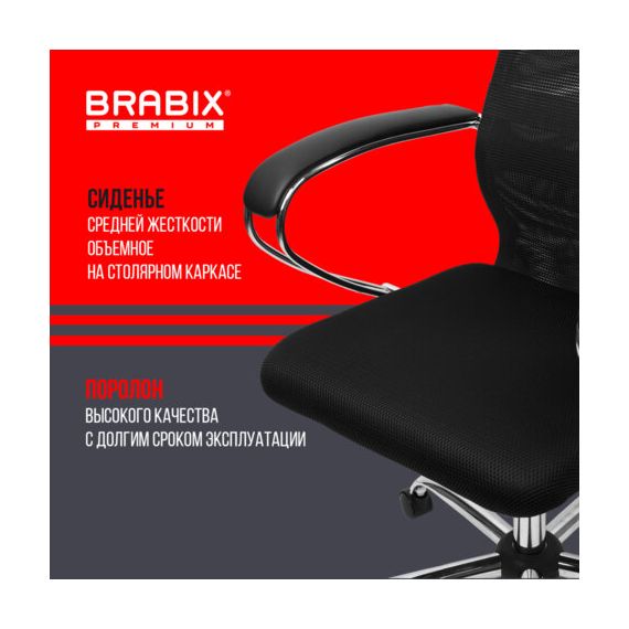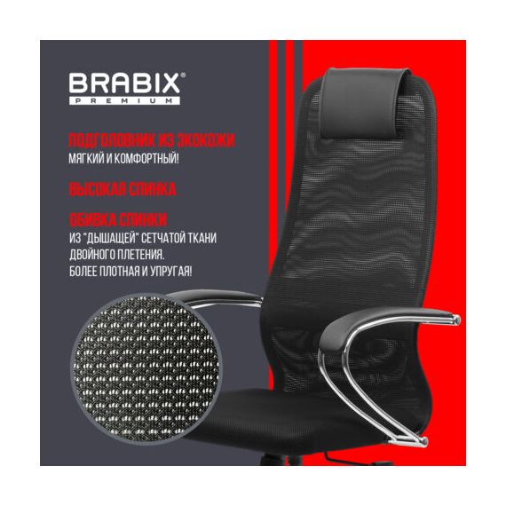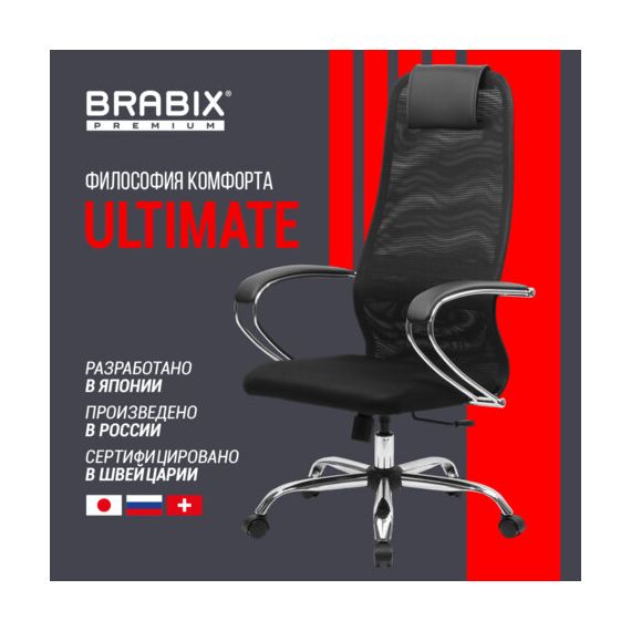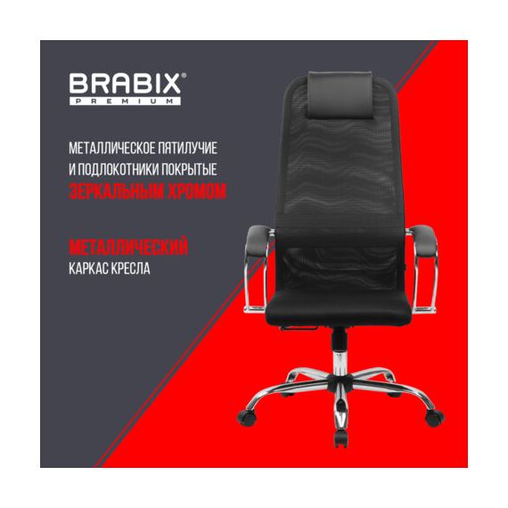 Кресло BRABIX PREMIUM "Ultimate EX-800" хром, плотная двойная сетка Х2, черное, 532911