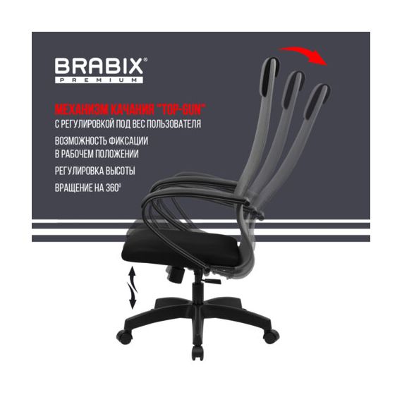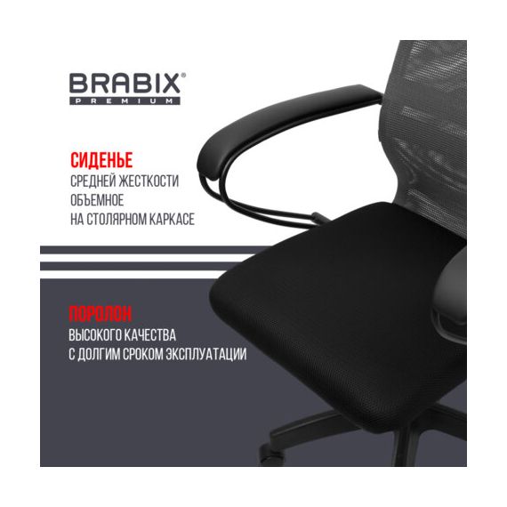 Кресло BRABIX PREMIUM "Ultimate EX-800" пластик, плотная двойная сетка Х2, черное/серое, 532915