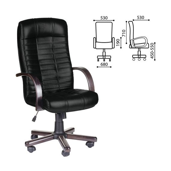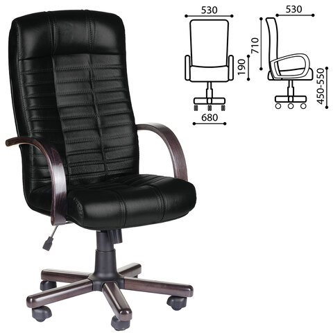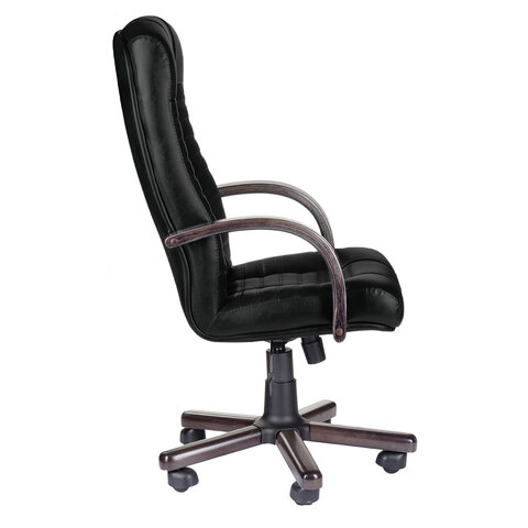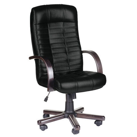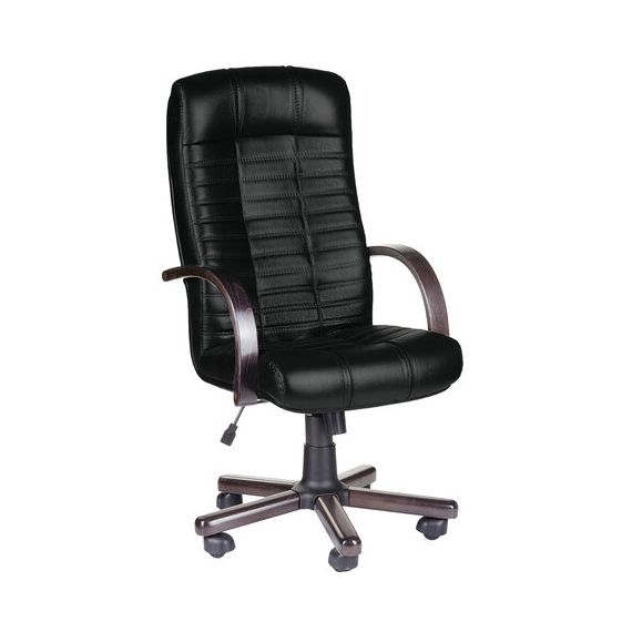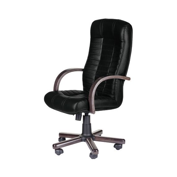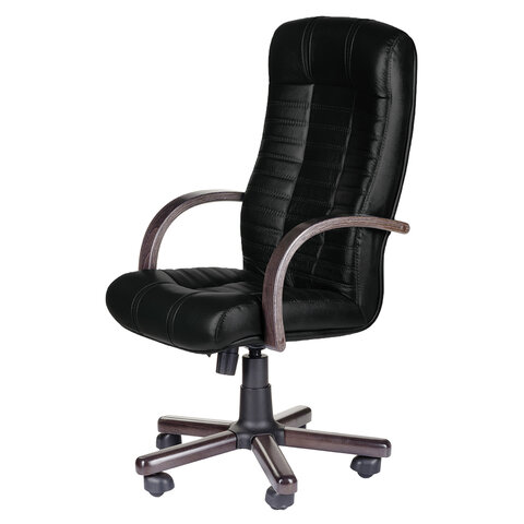 Кресло из натуральной кожи "Атлант-экстра", дерево (орех), монолитный каркас, черное