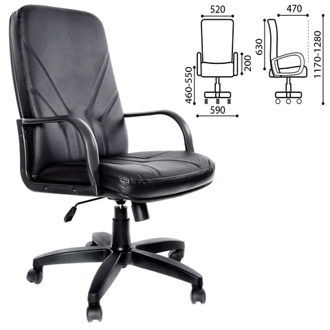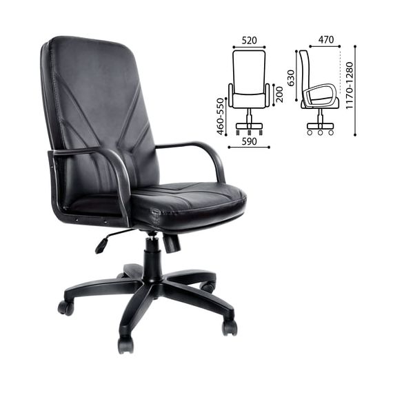 Кресло из натуральной кожи "Менеджер", монолитный каркас, черное