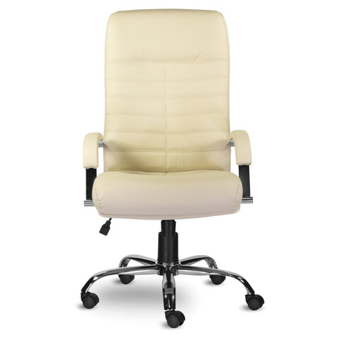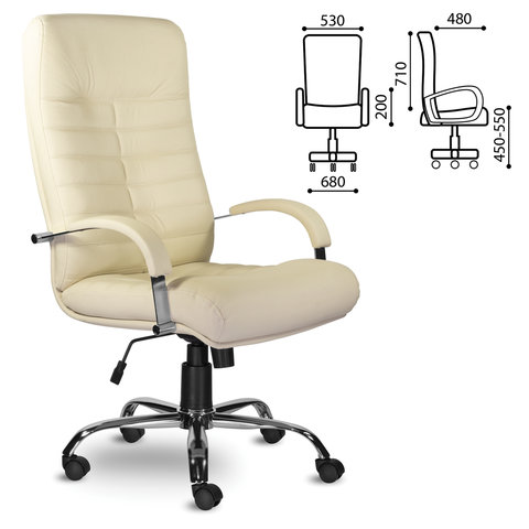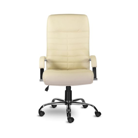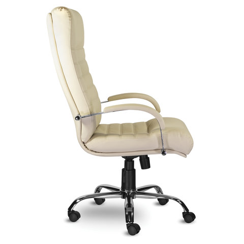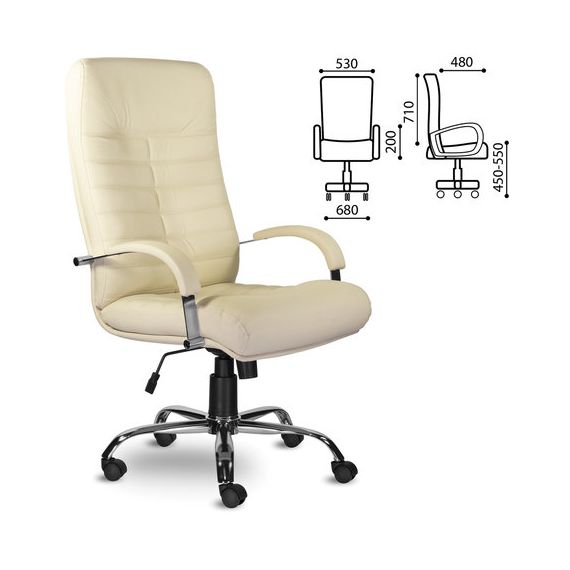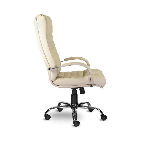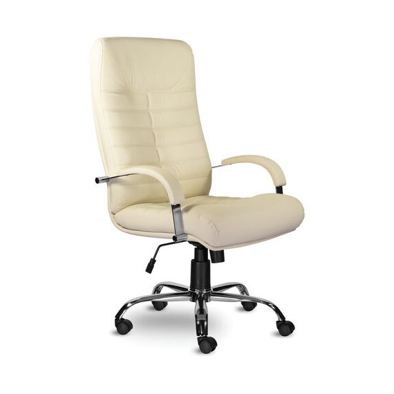 Кресло из натуральной кожи "Орион", хром, монолитный каркас, бежевое