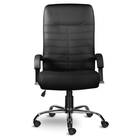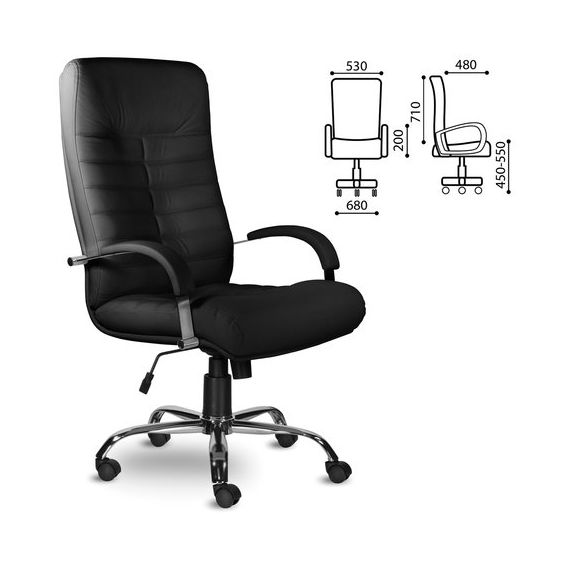 Кресло из натуральной кожи "Орион", хром, монолитный каркас, черное