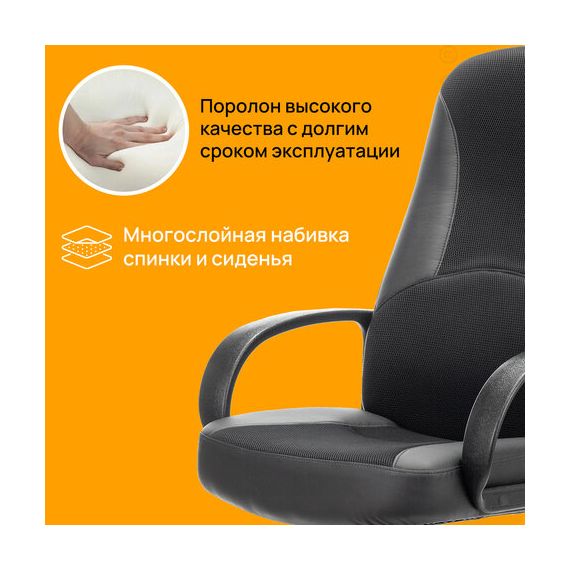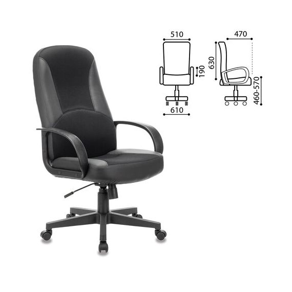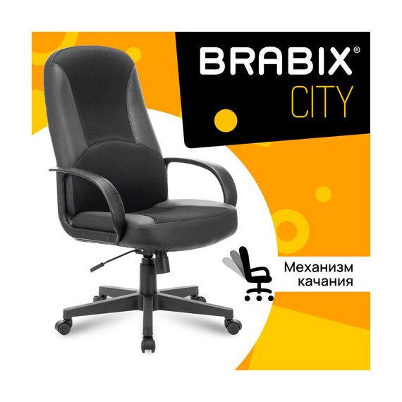 Кресло офисное BRABIX "City EX-512", кожзаменитель черный, ткань черная, TW, 531407