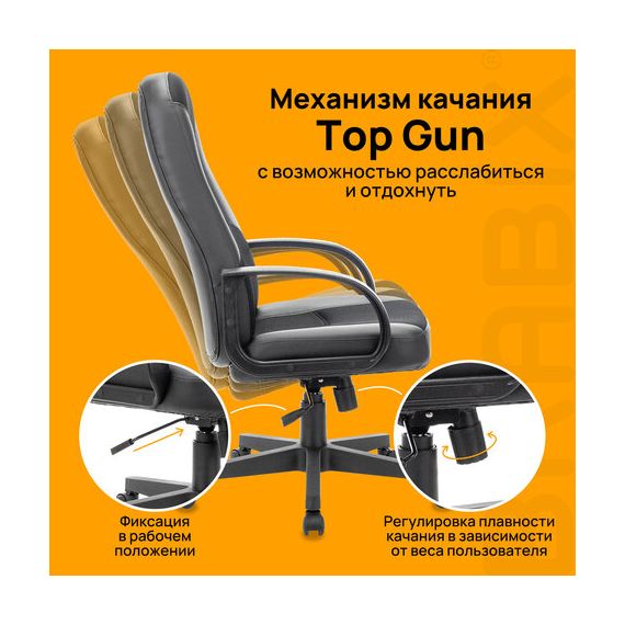 Надежный механизм качания "Top Gun" позволяет осуществлять свободное качание с фиксацией в рабочем положении и регулировки усилия качания под вес сидящего. Он помогает обеспечить хорошую поддержку спины и поясницы.